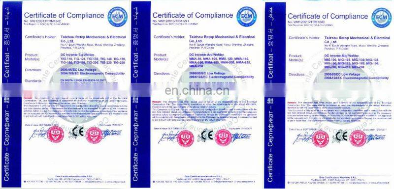 Taizhou Retop Mechanical and Electrical Co., Located., located in wenling, zhejiang Province, ,is specialized in manufacturing welding and cutting equipment based on inverter and conventional technology. We are dedicated to designing, testing and manufacturing a full line of welding and cutting products that are with industrial quality and easy to use.Whether you are in production,farming,maintenance,auto repair,or a do-it-yourself,we have a product that fits your needs.