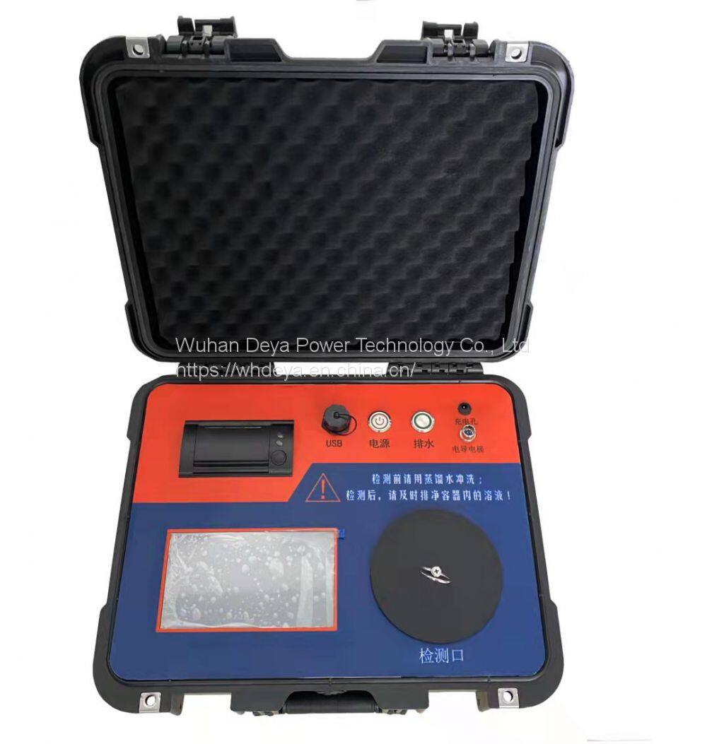 DYYH-330 Insulator Salt Ash Integrated Tester is used to detect the pollution adhesion of insulators in power lines. The instrument can measure the insulator salt density and ash density at one time, simplifying the process of insulator pollution detection, and is very suitable for on-site inspection and laboratory use. The pollution degree of insulators in power lines is mainly characterized by the salt density (ESDD) and ash density (NSDD). The instrument has the function of measuring salt density and ash density at the same time. The common solution volume and insulator model are built in, which is convenient for users to call directly. The insulator model and surface area can be customized by users. The data saving function is added, which can save 100,000 groups of test data. The machine can view the data and support U disk to export the data, which is convenient for users to save and view on the computer.