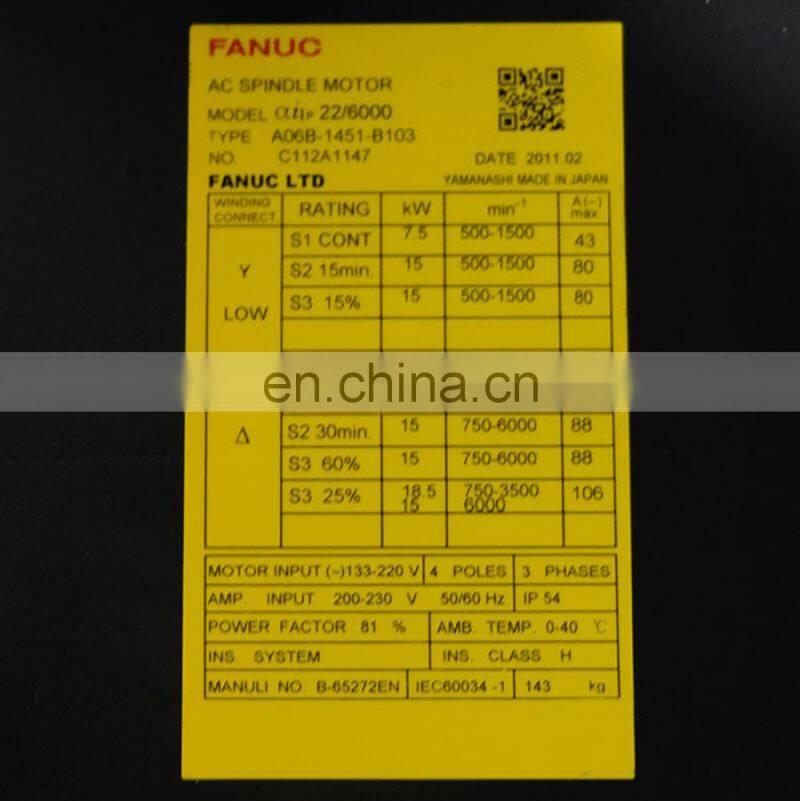 Home > Products > FANUC Parts > Bulk Price A06B-1451-B103 Fanuc ac Spindle Motor