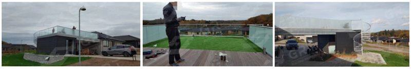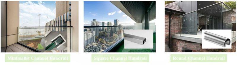 (Tempered Clear Glass with Top Stainless Steel Round Channel Handrail, Aluminum Solid- Core U Profile with Double Sides Stainless Steel Cladding)