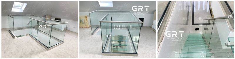 (Tempered Laminated Frosted Glass with Top Stainless Steel Round Channel Handrail, Aluminum Solid- Core U Profile with Double Sides Stainless Steel Cladding)