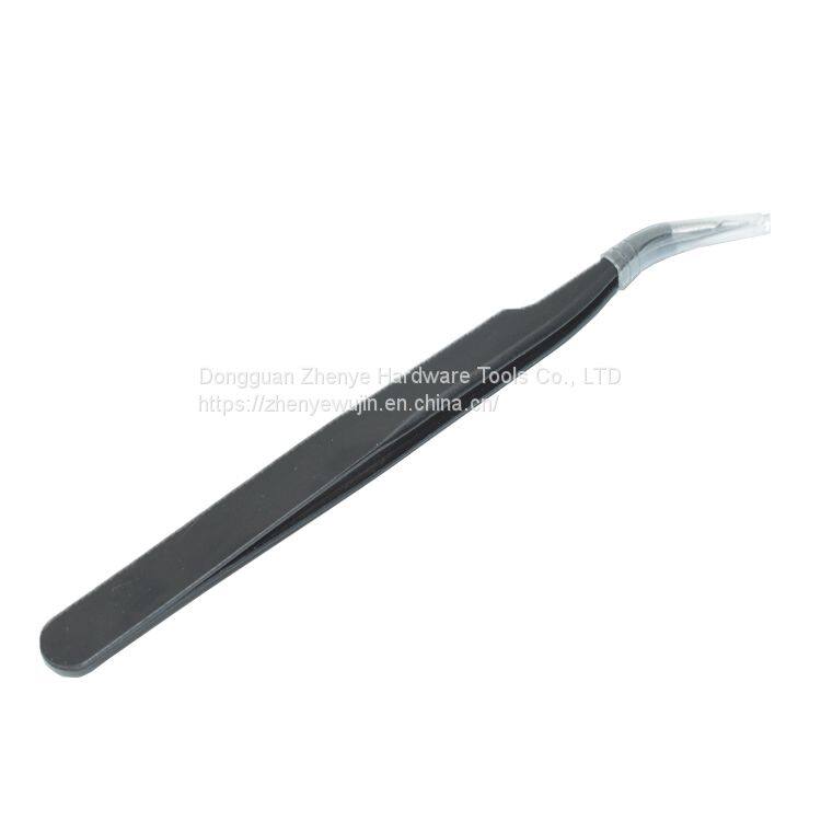 Plastic Tweezers Black Flat Head Elbow Pointed Flat Nose Round Head Plastic Anti-static Tweezers Clamping Tool