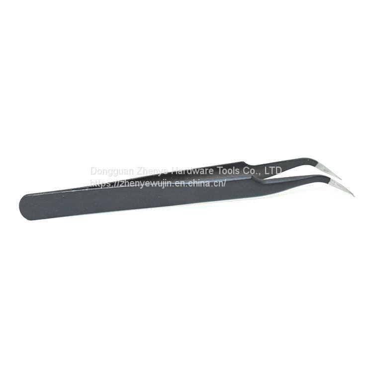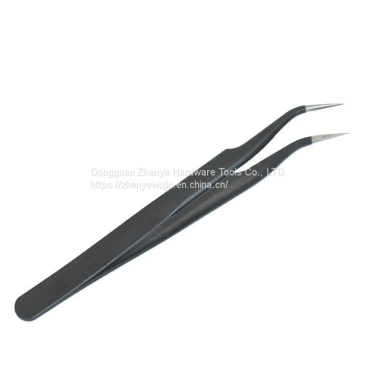 Precision Stainless Steel Hard Anti-static Tweezers Bird's Nest Hair Picking Clip Maintenance Tweezers Pointed Elbow All Black 11 Tweezers