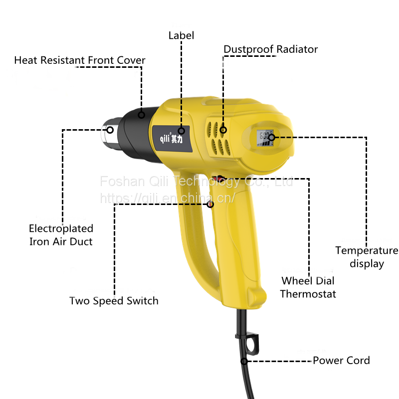 Qr986b Qili China Wholesale Electric Heat Gun Stepless Temperature Regulation by Top Knob Heat Gun Plastic Welding
