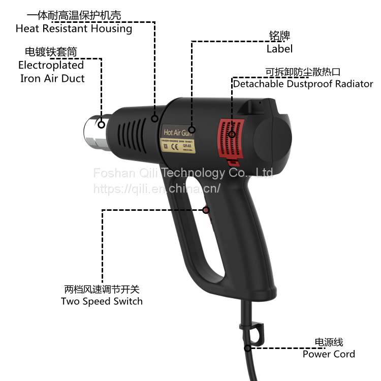 Qr612A Qili Cheap Made in China Hot Air Gun With Helical Wind Electric Heat Gun Hot Air Gun 2000W