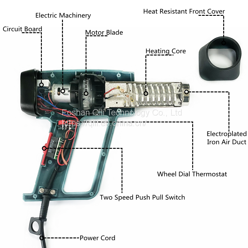 Qili Chinese Manufacturer Domestic Ni Cr Wire Heating Hot Air Gun With Helical