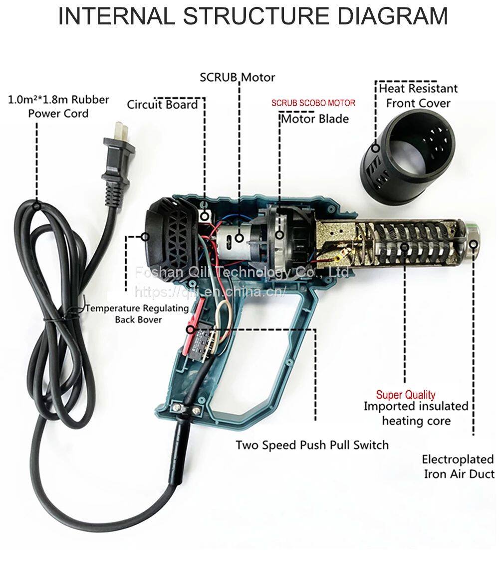 Founded in 2018. Foshan Qili Technology Co.. Ltd. is located at No. 32. Jingang Avenue, Jinben Town, southwest Street, Sanshui District, Foshan City. With a constructio area of 11000 square meters. It is a multi-directional development enterprise .The company is a modern large-scale manufacturing factory integrating R&D.Manufacturing and marketing of industrial hot air gun tools. It enjoys high reputation in the design/ process manufacturing field of durable industrial machinery and aims to become the most professional hot air gun production base in China. Since its establishment, the company has developed rapidly, with about 20 high-end technicians in mold design circuit&d. Product design and other&d. The factory is equipped with precision mold manufacturing and injection molding workshop, dust-free stamping workshop, circuit board production workshop, heating core production workshop, seven precision and intelligent assembly production lines, finished product packaging workshop and product development and testing workshop The company is mainly to undertake domestic and foreign hot air gun OEM brand customization business. We uphold the professional, dedicated, dedicated service production concept, and sincerely welcome domestic and foreign merchants to discuss cooperation.