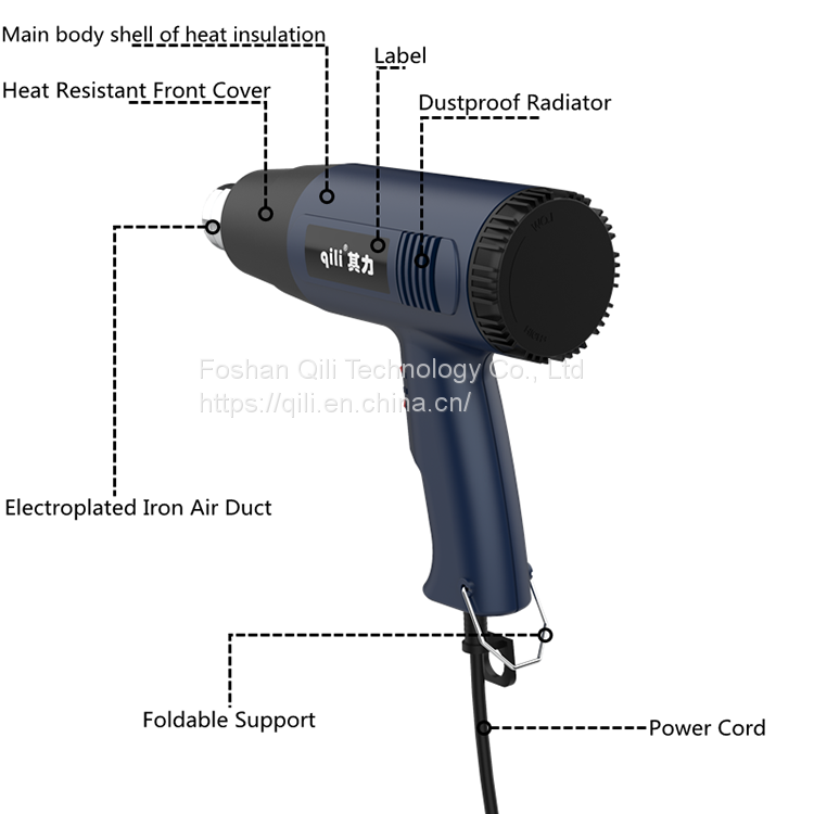 Qr-85b1 Qili Electric Tool Low MOQ Electric Heat Gun PC Material High Temperature Resistant Blade Heat Gun Soldering