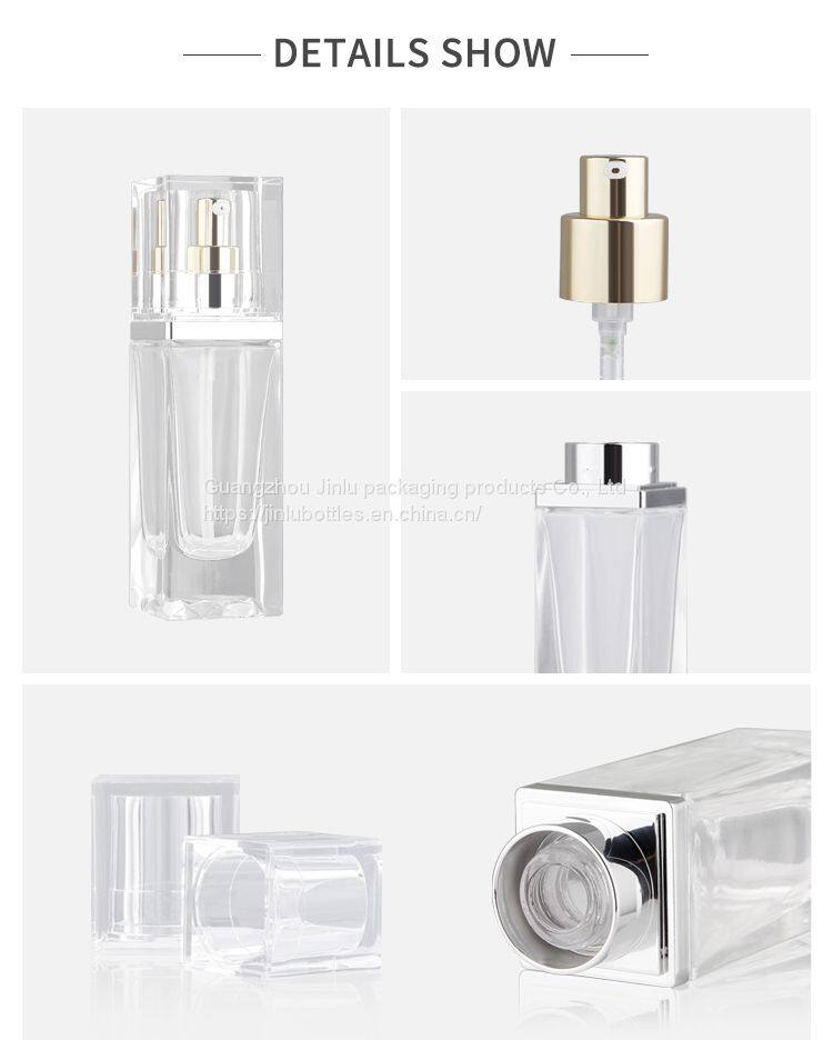 Spot 30ml Square Thick Base Foundation Make-up Bottle Transparent Essence Glass Bottle 30ml Square Pressure Dropper Original Solution BottleNegotiableMOQ: 10000 Sets