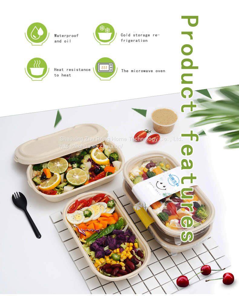 The sugarcane pulp lunchbox is made of wheat straw, bagasse and other plant fibers as raw materials without any PP material. It is molded by pulp molding and a wet pressing process. Food grade additives such as water-proof and oil-proof are added to the pulp to achieve the effect of holding hot and cold food. It can be fully degraded into organic matter in 90 days under the condition of industrial compost or household compost, and returned to nature.