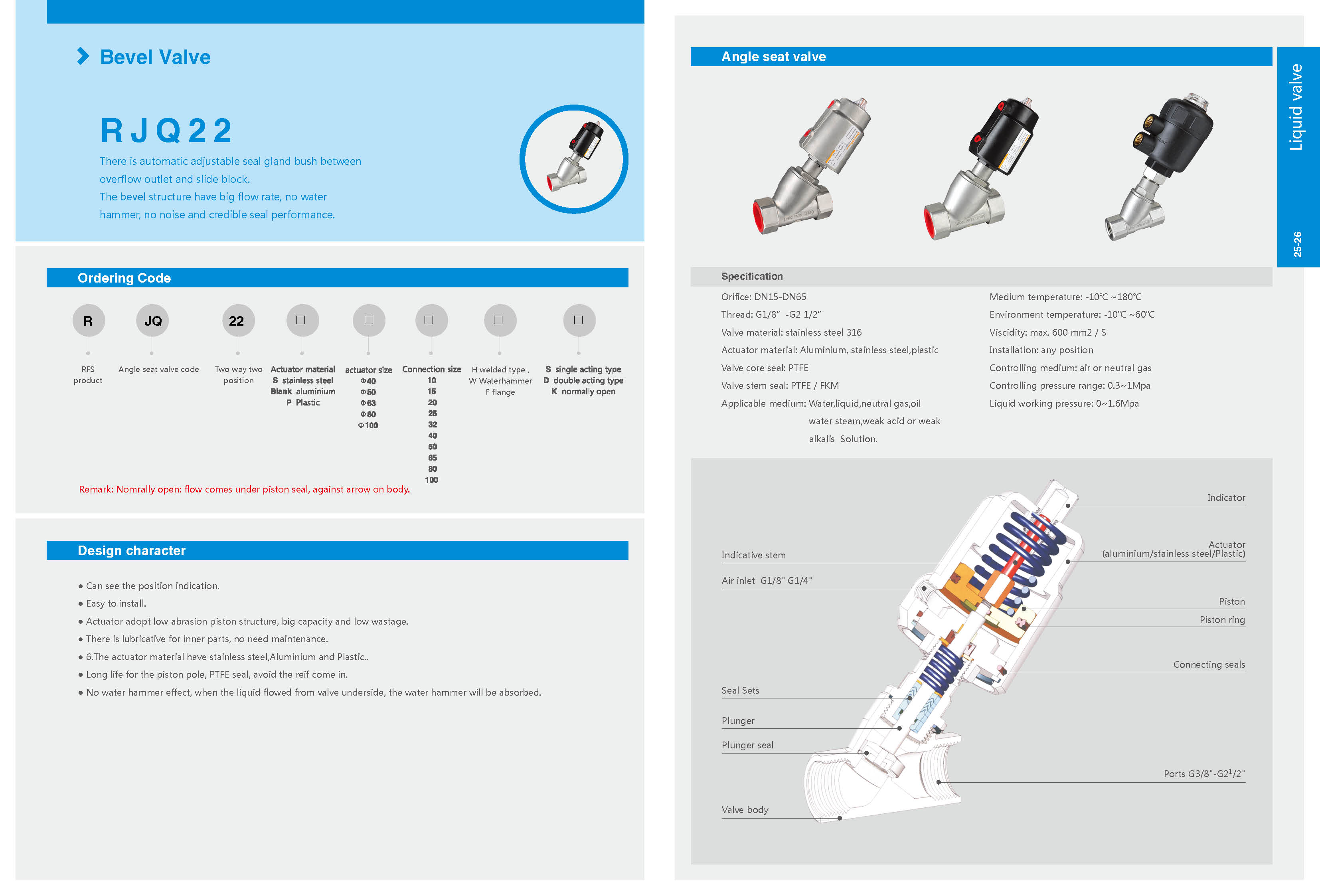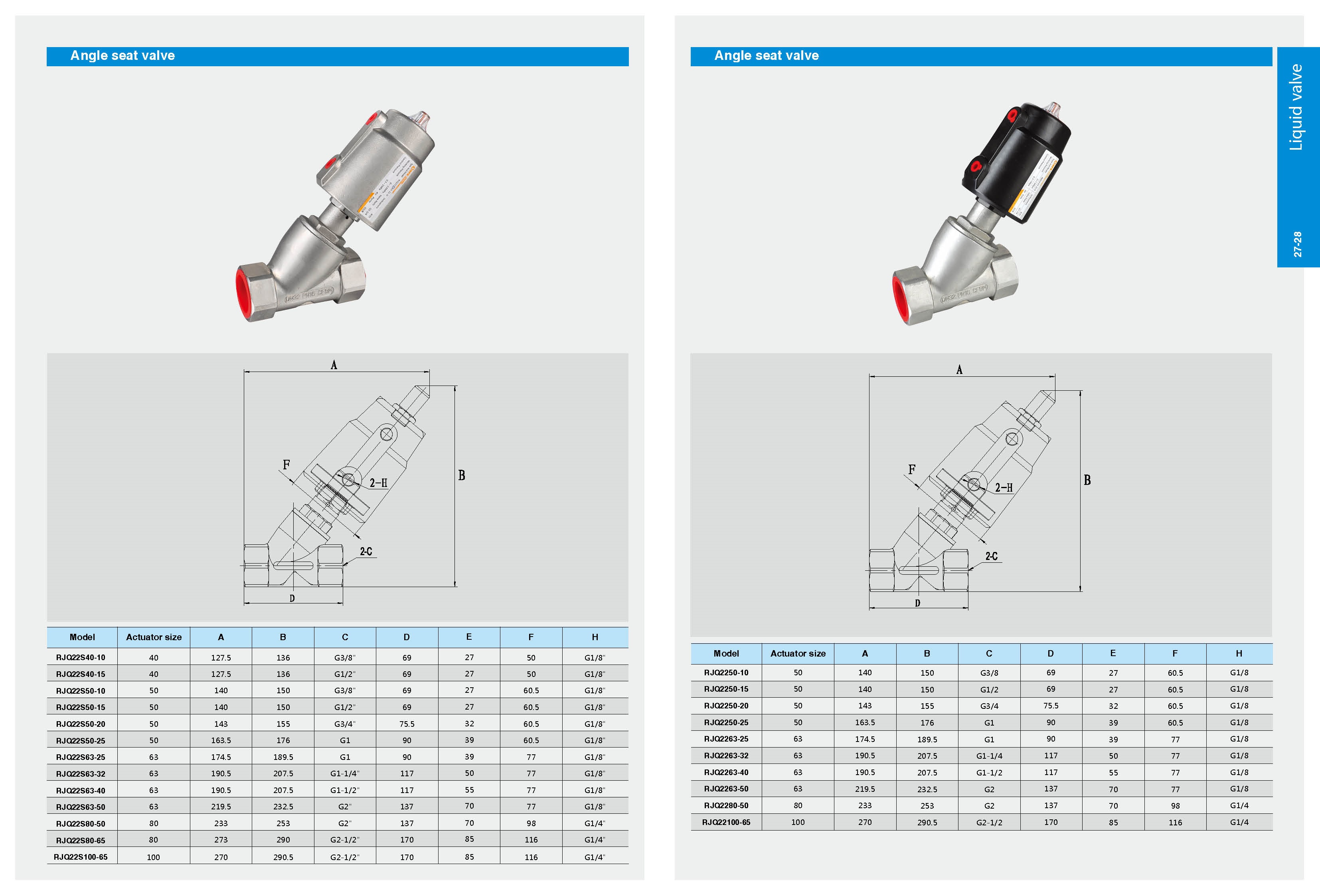RJQ22S50-25-D Double Acting Stainless Steel Air Control Angle Valve Thread Pneumatic Angle Seat Valve