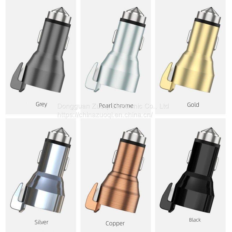 Mini Portable 17W high-quality Rescue life-saving dual usb quick car charger with Window Breaker Seatbelt Cutter