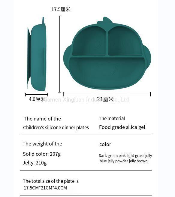 Hot food grade silicone 0-3 years old infants and young children integrated division grid money side food plate