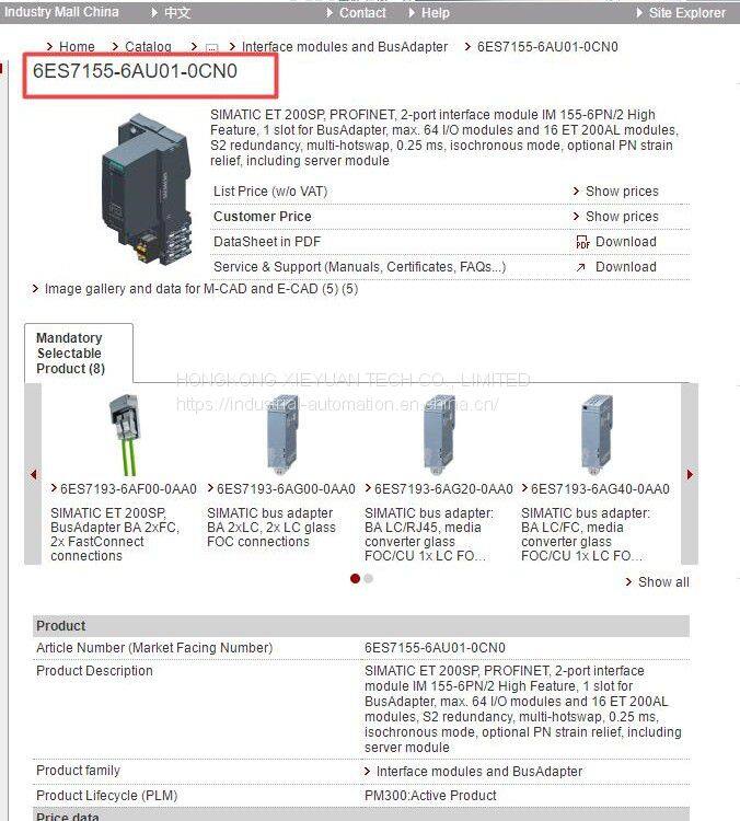 In stock Siemens 6ES7155-6AU01-0CN0 Interface modules SIMATIC ET 200SP