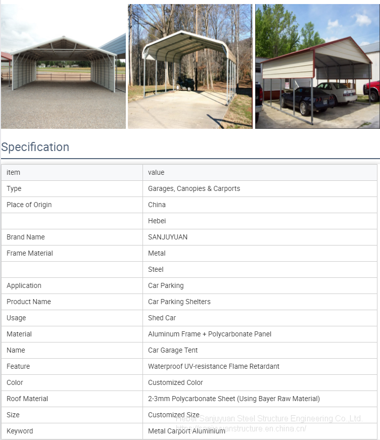 Low Cost High Quality Hot Sell China Steel Structure Building Carport Customized and Prefabricated Car Shed Building