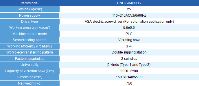 7) Adopt the ASA brand electric screwdriver especial for automation as the driver,Torsion outputs stably,Which can ensure a perfect assembling quality.