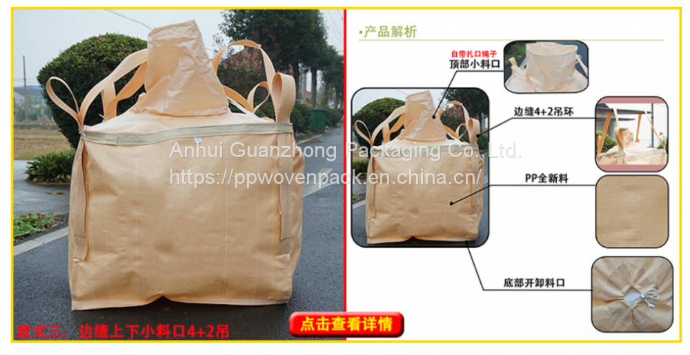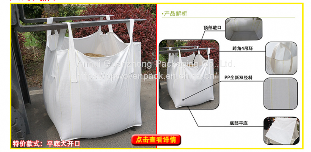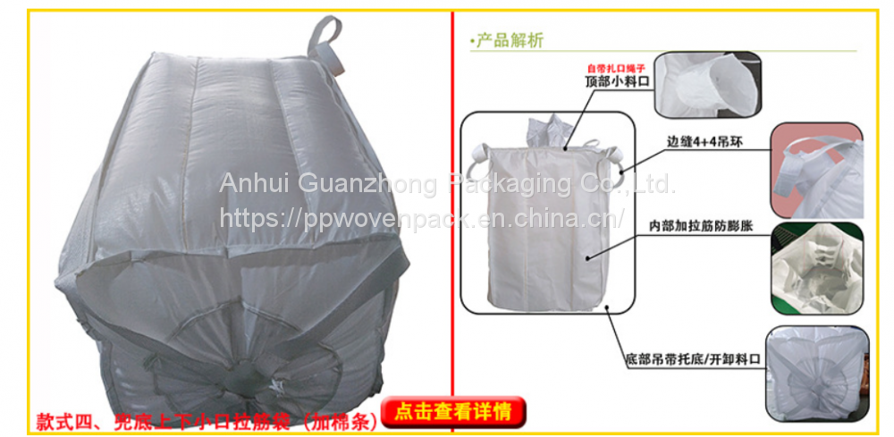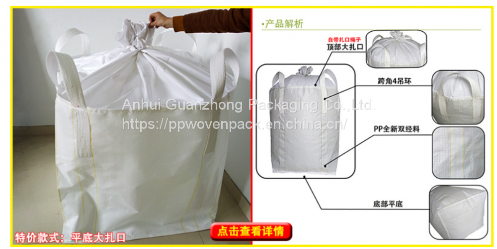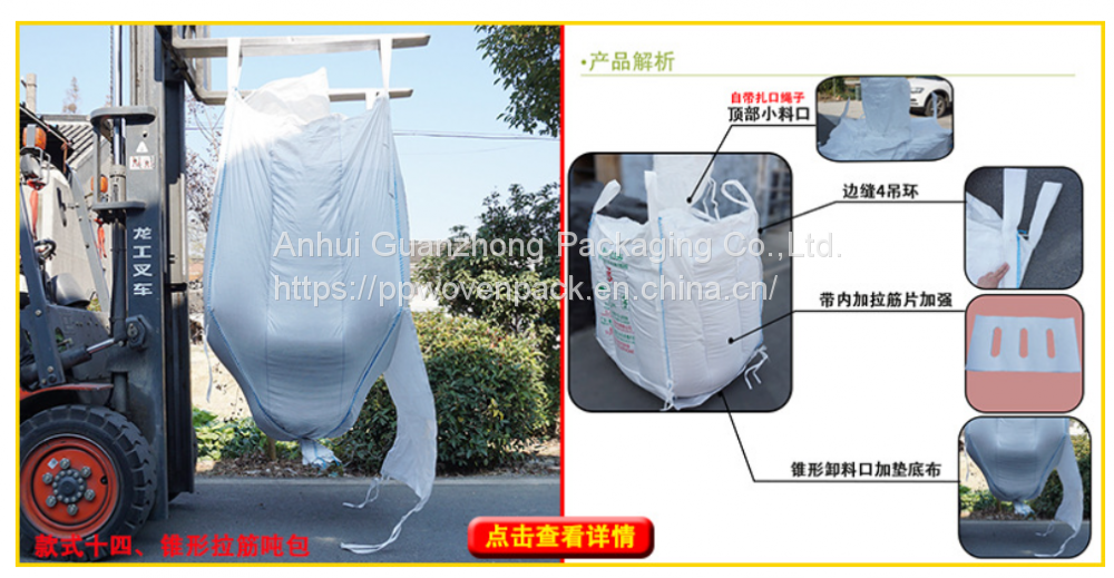 Jumbo big bag also known as bulk big bag, normally produced from Polypropylene woven fabric with lifting loops that allow the bag to be filled from top and discharged from the bottom. It widely used in the fields of Industrial materials, Chemicals, Minerals, Agriculture products and so on. We have served more than 500 customers covering hundreds of different packaging solution.