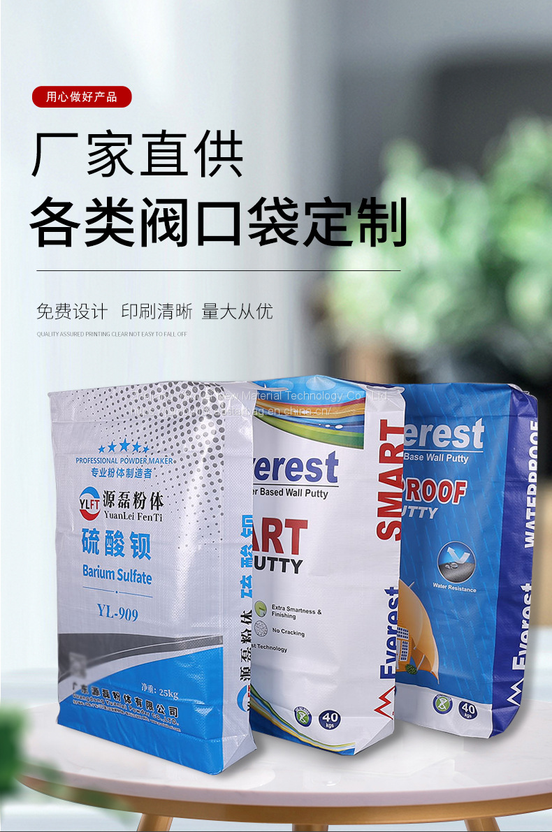 Custom Empty 40kg pp Block Bottom Valve Cement Bag Wall Putty Powder Bag