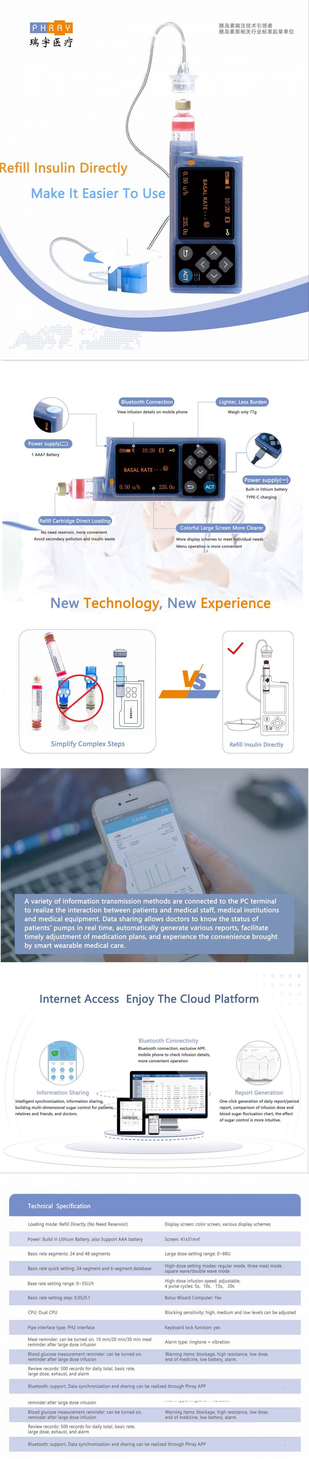 China Zhenzhou Phray Smart Electric Insulin Syringe Pump Diabetes Insulin CSII Insulin Pump