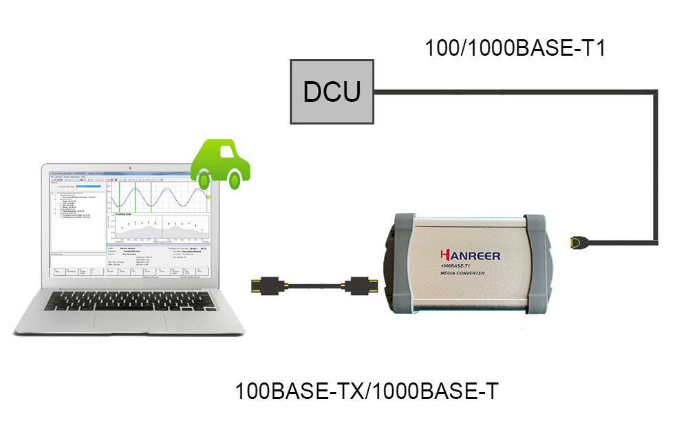 HEER-1001 series products are the most advanced Ethernet media converters for automotive Ethernet applications. Using the HEER-1001 series Ethernet converter, the 100/1000BASE-T1 automotive Ethernet can be converted into a 100BASE-TX/1000BASE-T traditional Ethernet, and connected to the PC for debugging or testing.
