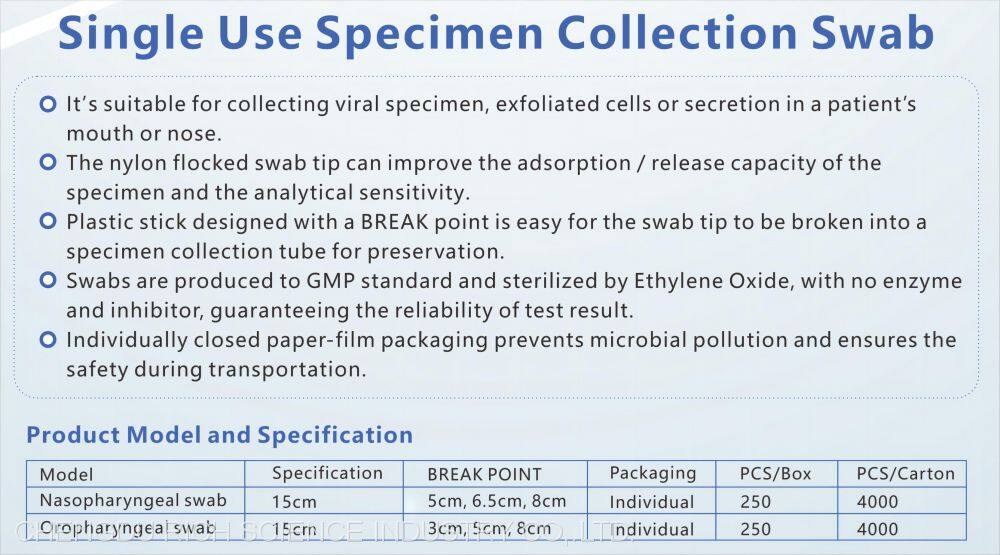 [Usage] The product is applicable to the collection of human respiratory tract specimen and mouth mucosa specimen.