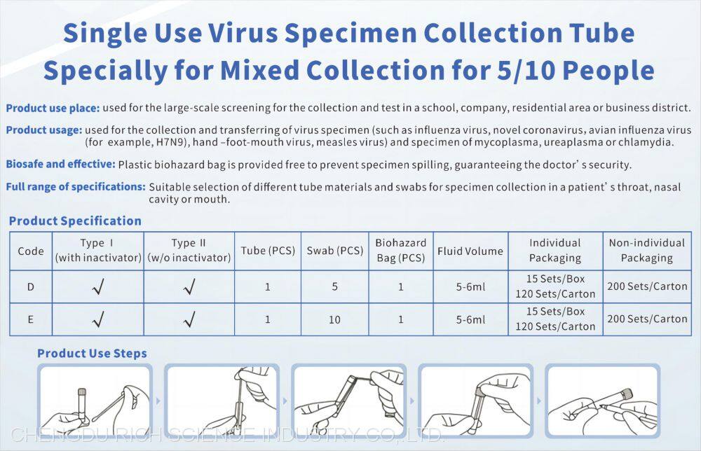 FDA Approved Single-Use Virus Specimen Collection Tube&Swabs (CE)