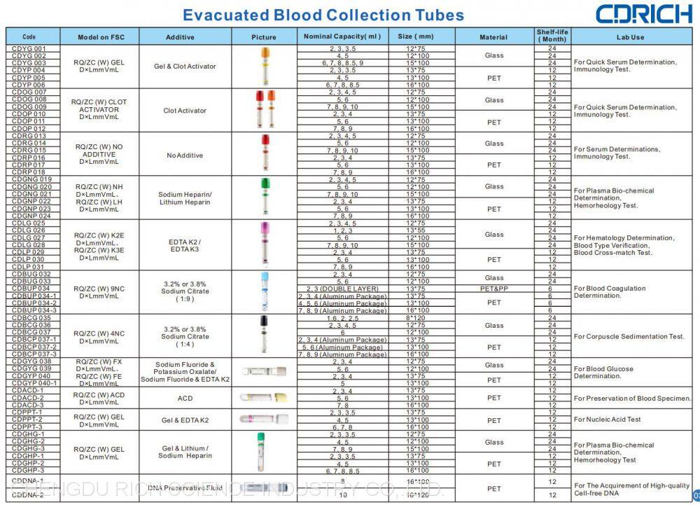 | CDGHP | RQ/ZC(W) GEL D*LmmVml | Gel&Lithium/ Sodium Heparin | 2, 3, 3.5 | 12*75mm | GLASS | 24 | For plasma bio-chemical determination, hemorheology test. |