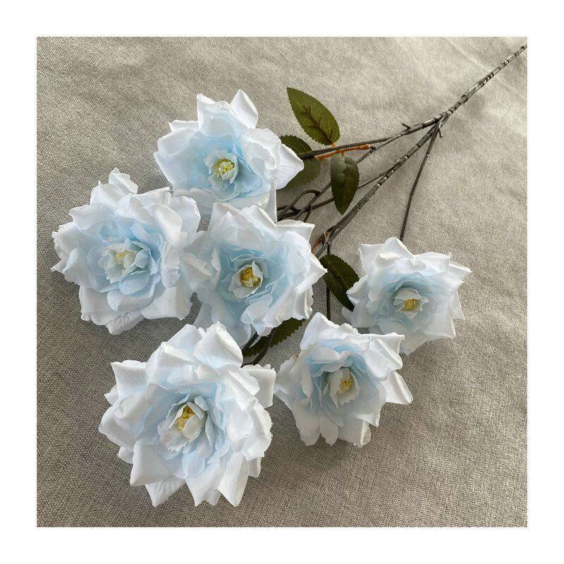 Artificial Simulation Long Branch 6 Snow Roses for Home Decoration