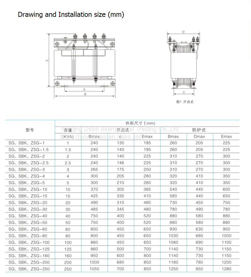 SG/SBK/ ZSG Three Phase Dry Type Control and Rectifier Transformers