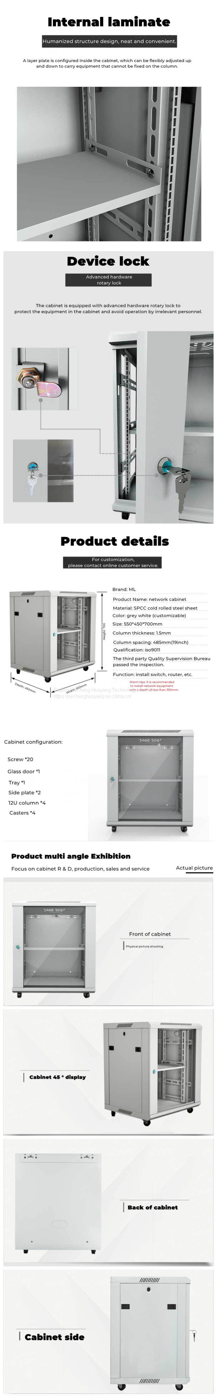 12u White Network Cabinet Server Rack Wall Cabinet Switch Cabinet Weak Current Monitoring Thickened Tempered Glass Small Cabinet