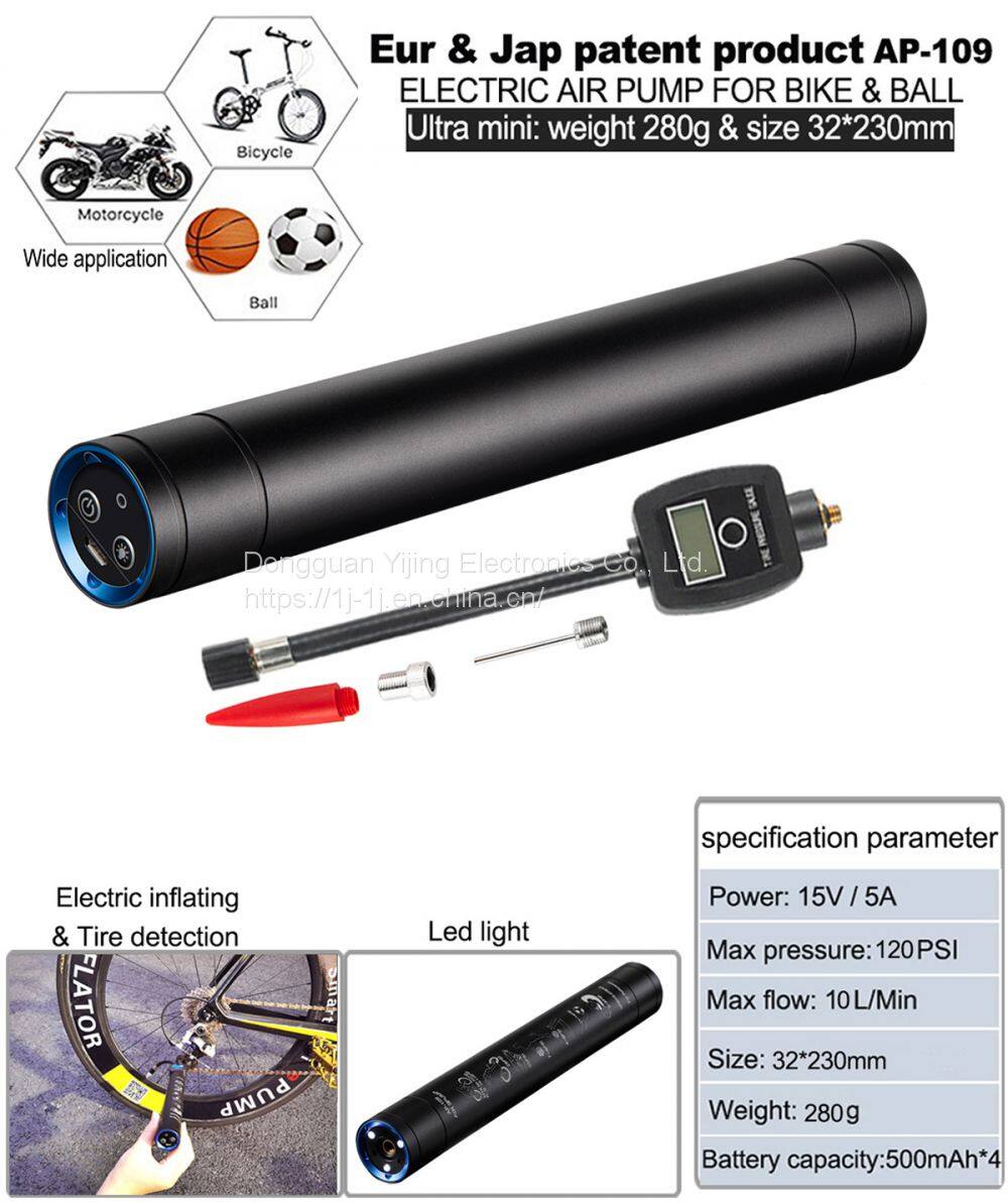 Chinese YI JING OEM Portable Air Compressor Bicycle Tire Inflator Easy-to-use Electric Air Mini Smart Bike PumpUS$ 20.5 - 21.6MOQ: 24 Sets