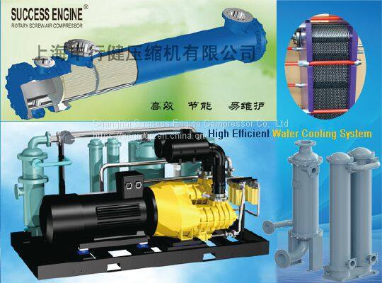 For high-power unit, unique shell-and-tube baffle and tube-column was designed and installed, effectively improves the heat exchange rate between compressed air and water, and reduces the water consumption.