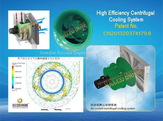 SUCCESS ENGINE energy-saving screw air compressor has two core patents - large-diameter rotor profile design and high-efficiency centrifugal cooling system, which greatly improves the compression and volumetric efficiency. The product has been tested by third-party, the volume flow and input power meet the requirements of the energy-saving evaluation value, and it is rated as an energy-saving product.