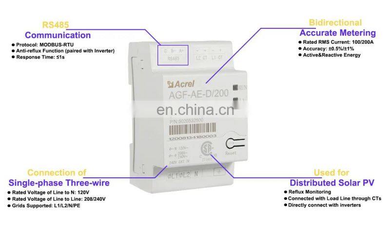 Single-phase Reflux Monitoring Energy Meter ACR10R-D10TE Installation 35mm DIN Rail for Solar PV InverterUS$ 55 - 60MOQ: 1 Piece