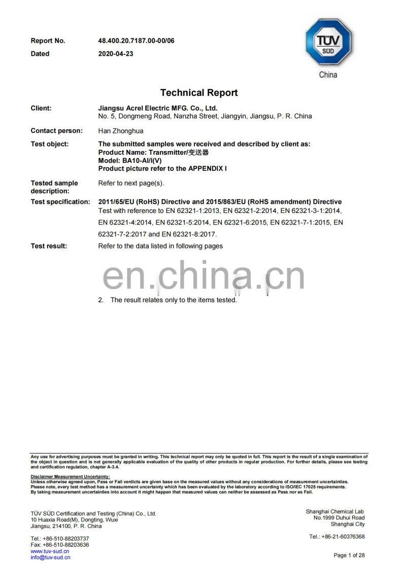 Wastewater Treatment Transducer BD-AI Current Sensor AC 0 5a 0-1A to 4 20ma Transmitter Electrical TransducerNegotiableMOQ: 1