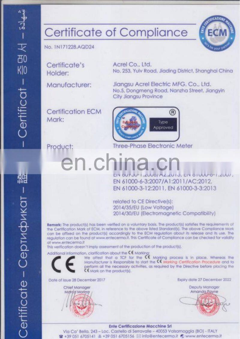 Acrel CE Certified Low Voltage Electrical 3 Phase Payment Energy Power Meter to Monitor KwhNegotiableMOQ: 1