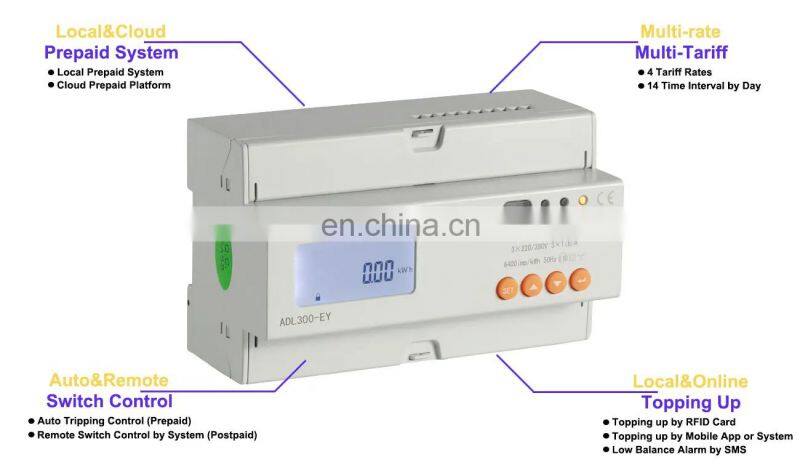 Acrel ADL300 35mm DIN Rail Historical Records Best Prepaid Electricity Meters 8 Digits LCD Display