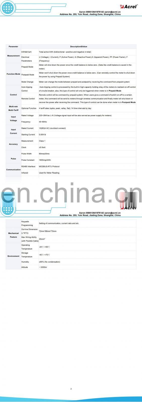 Acrel One Phase Types of Prepaid Smart Energy Consumption Meters