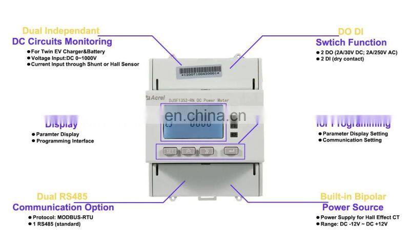 - Acrel DJSF1352-RN Rail Type 2 Circuits DC Power Consumption Meter With CE,UL Certificate RS485 Modbus-RTU Communication