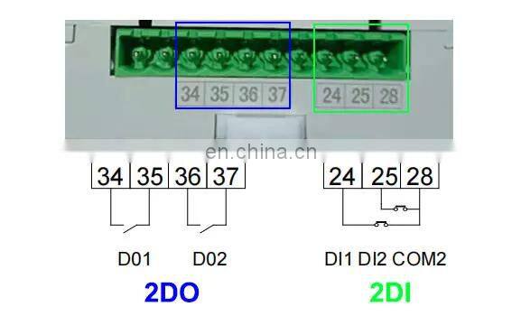 ● 2 DO (2A/30V DC; 2A/250V AC)