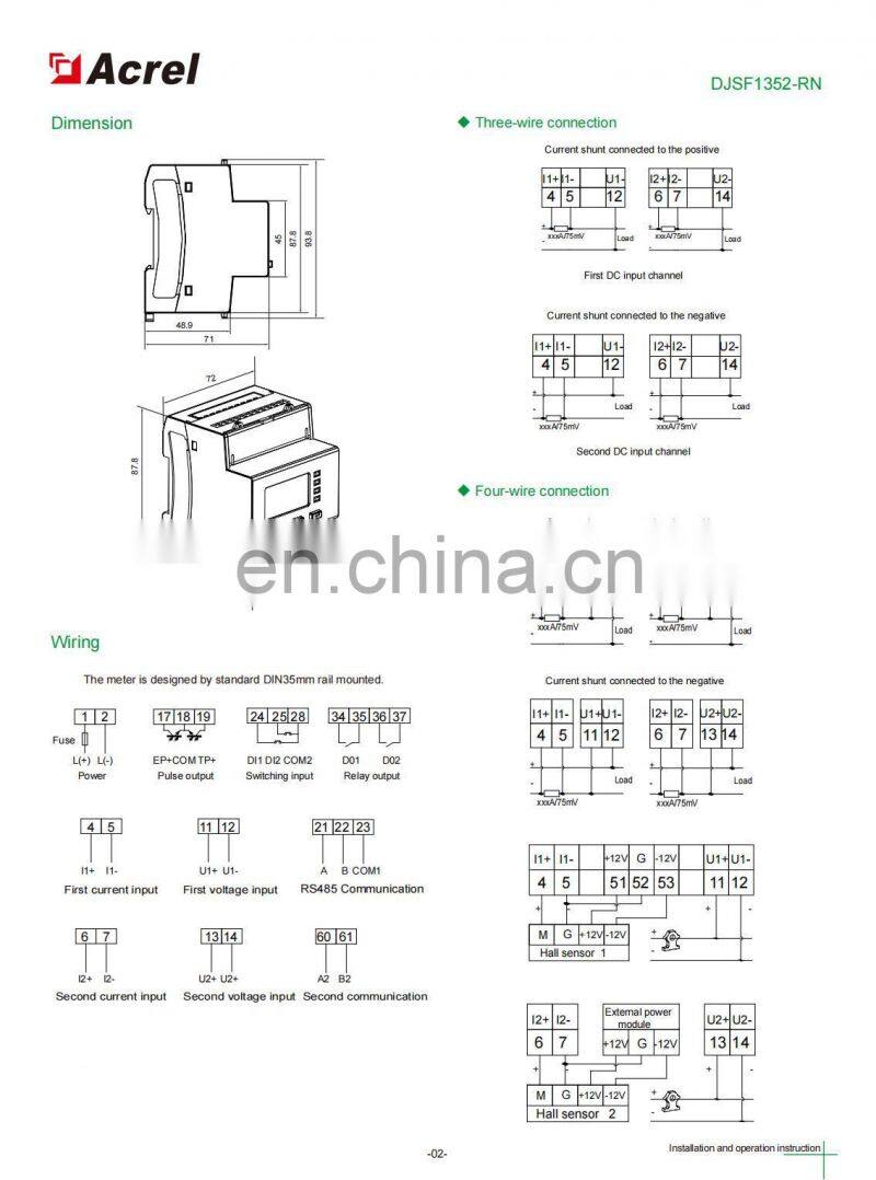 - Industry-Leading Support Acrel DJSF1352-RN/S RS485 Modbus-RTU Communication Din Rail Type 2 Circuits DC Power Consumption Meter With CE,UL Certificate/0.5S Accuracy Shunt Connect