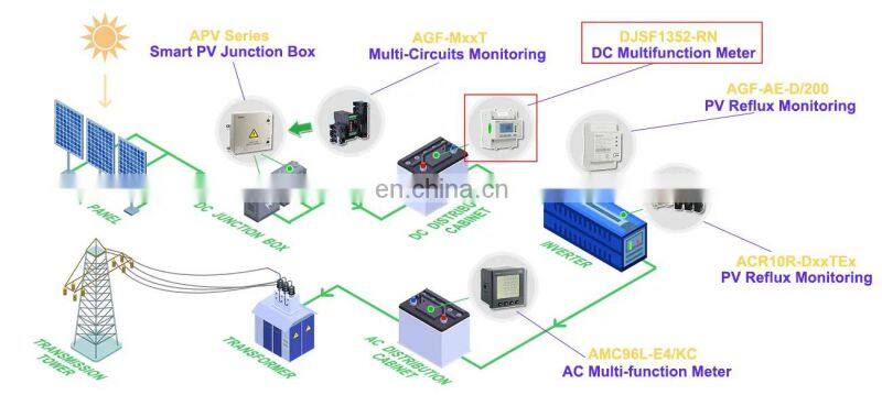 Solar DC Energy Meter for PV Plant Monitoring Acrel DJSF1352-RN DC Multifunctional Meter Used in PV Distribution System.