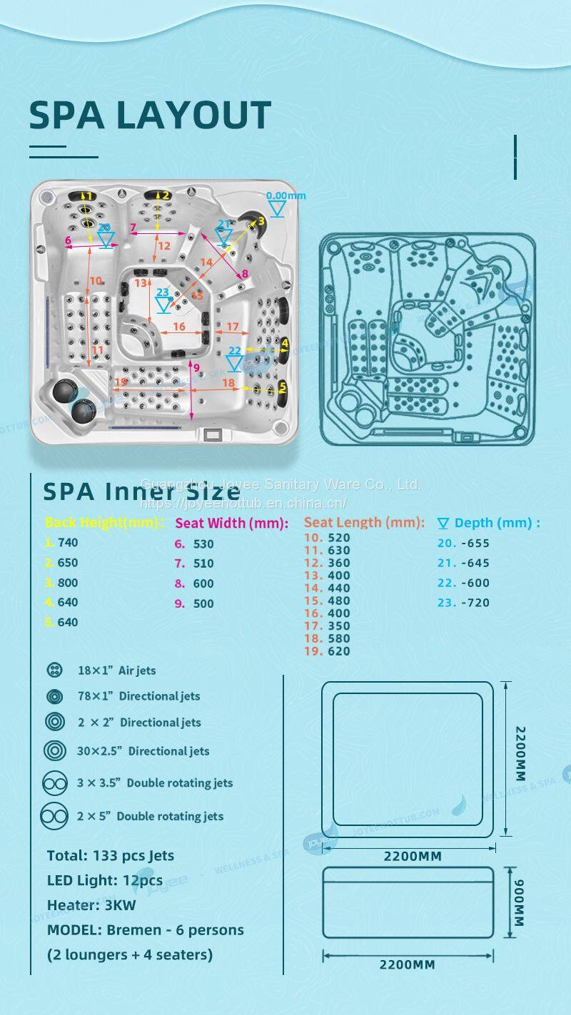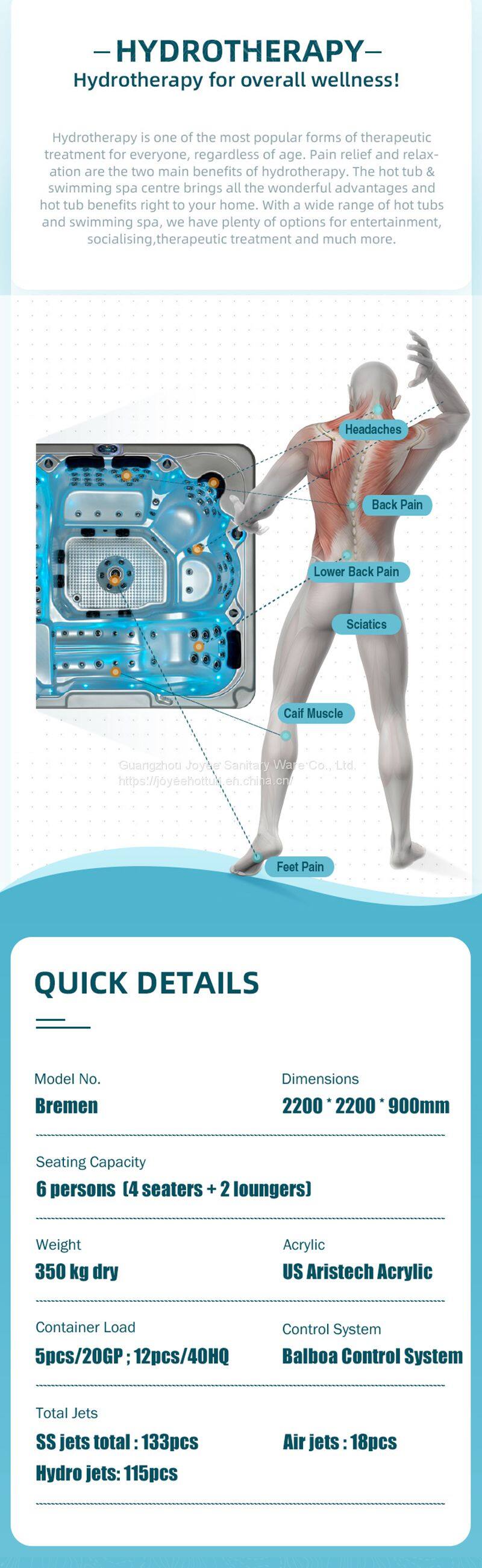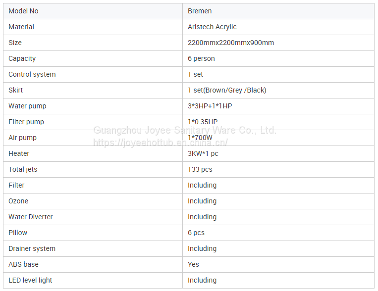 JOYEE Balboa System US Aristech Acrylic New 6 Person Massage Spa Hot Tub With Air Bubble Jet.