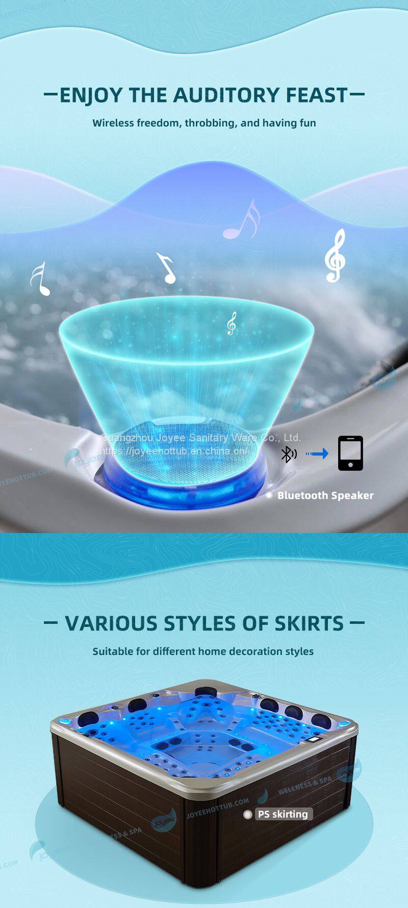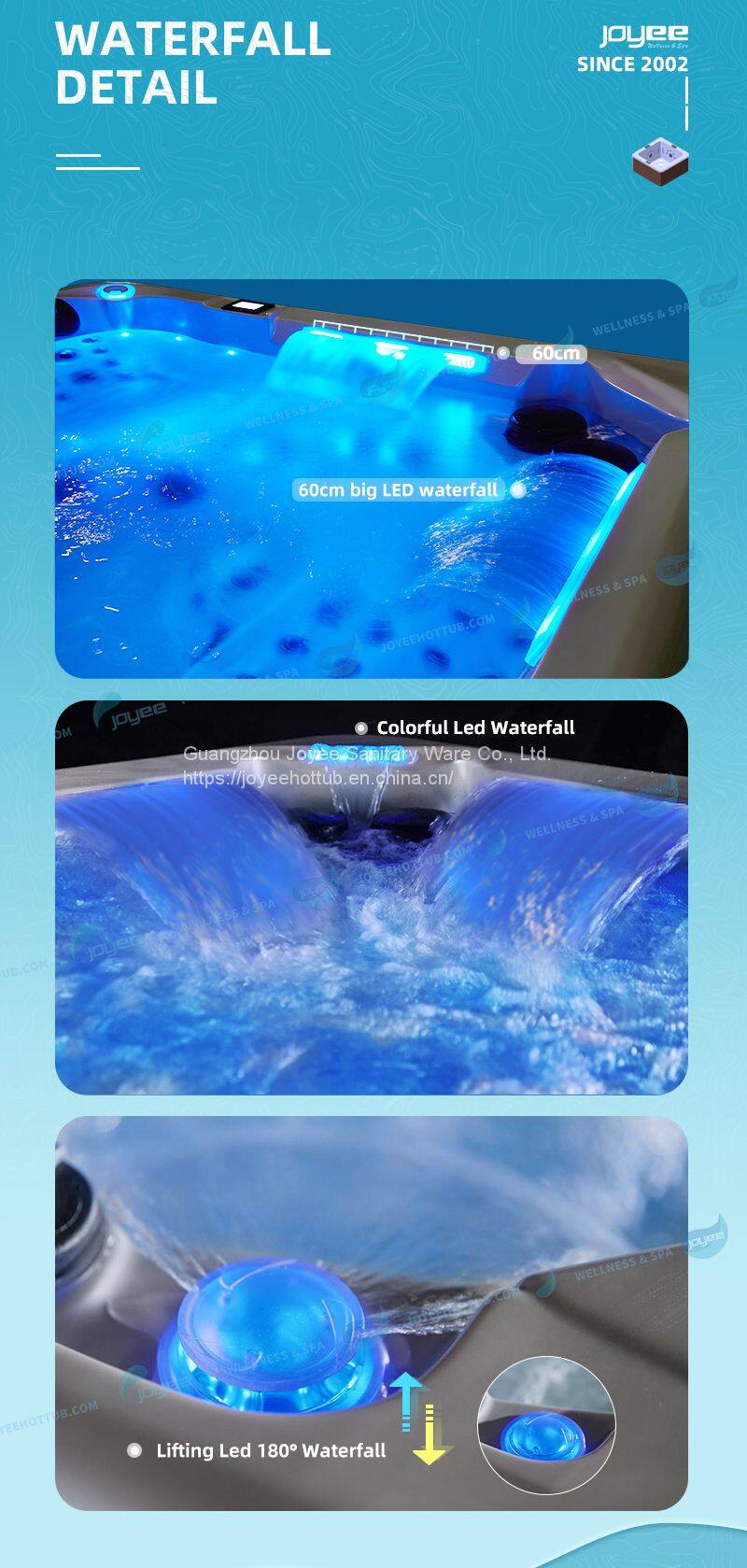5) LED fountains, waterfalls, cup holders designs make your outdoor spa more cool.