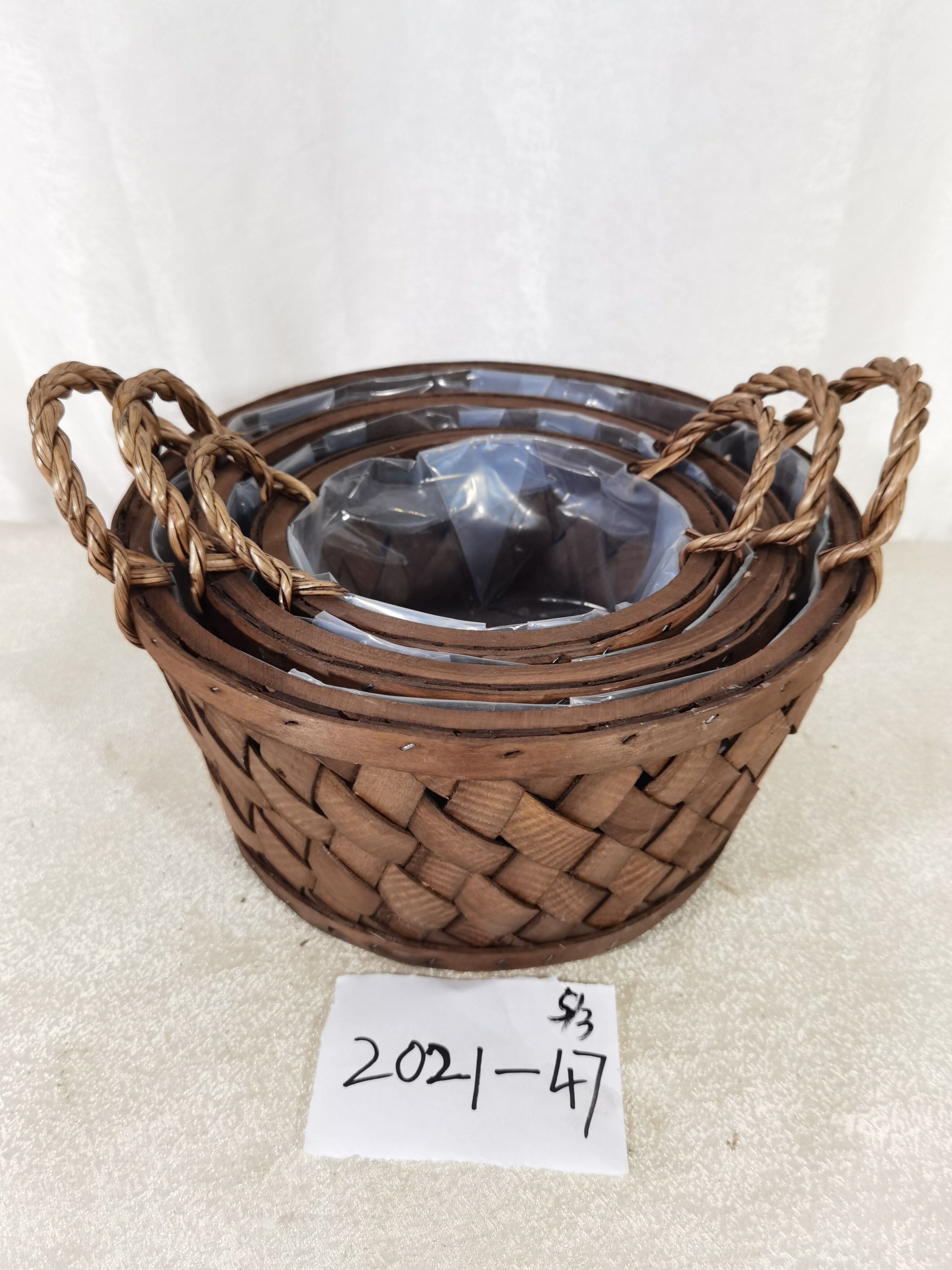 Natural Handmade Wood Chip Basket Flower Pots New Style