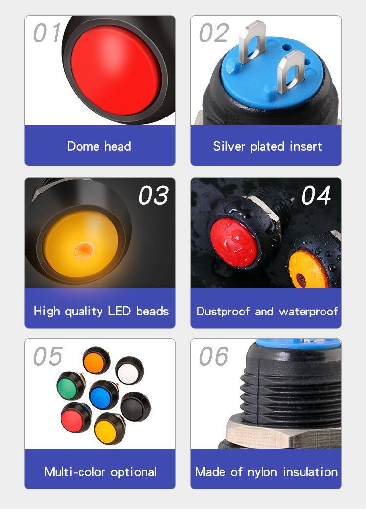 Mini Ip65 12mm Domed Led One Normally Open 12 Volt Push Button Switches Momentary
