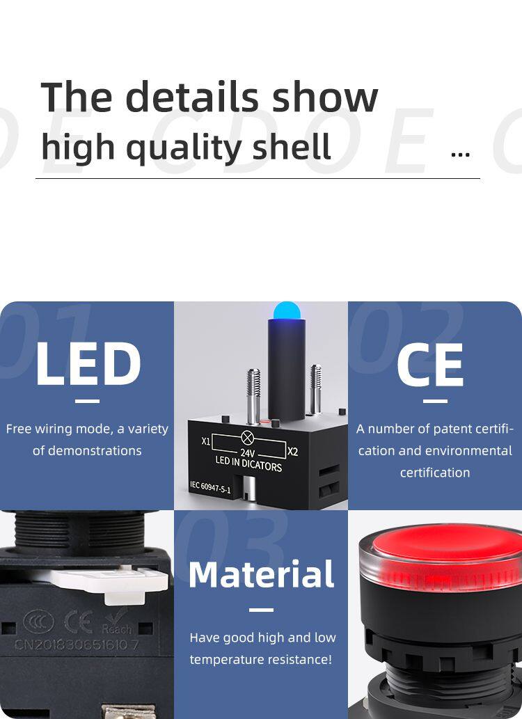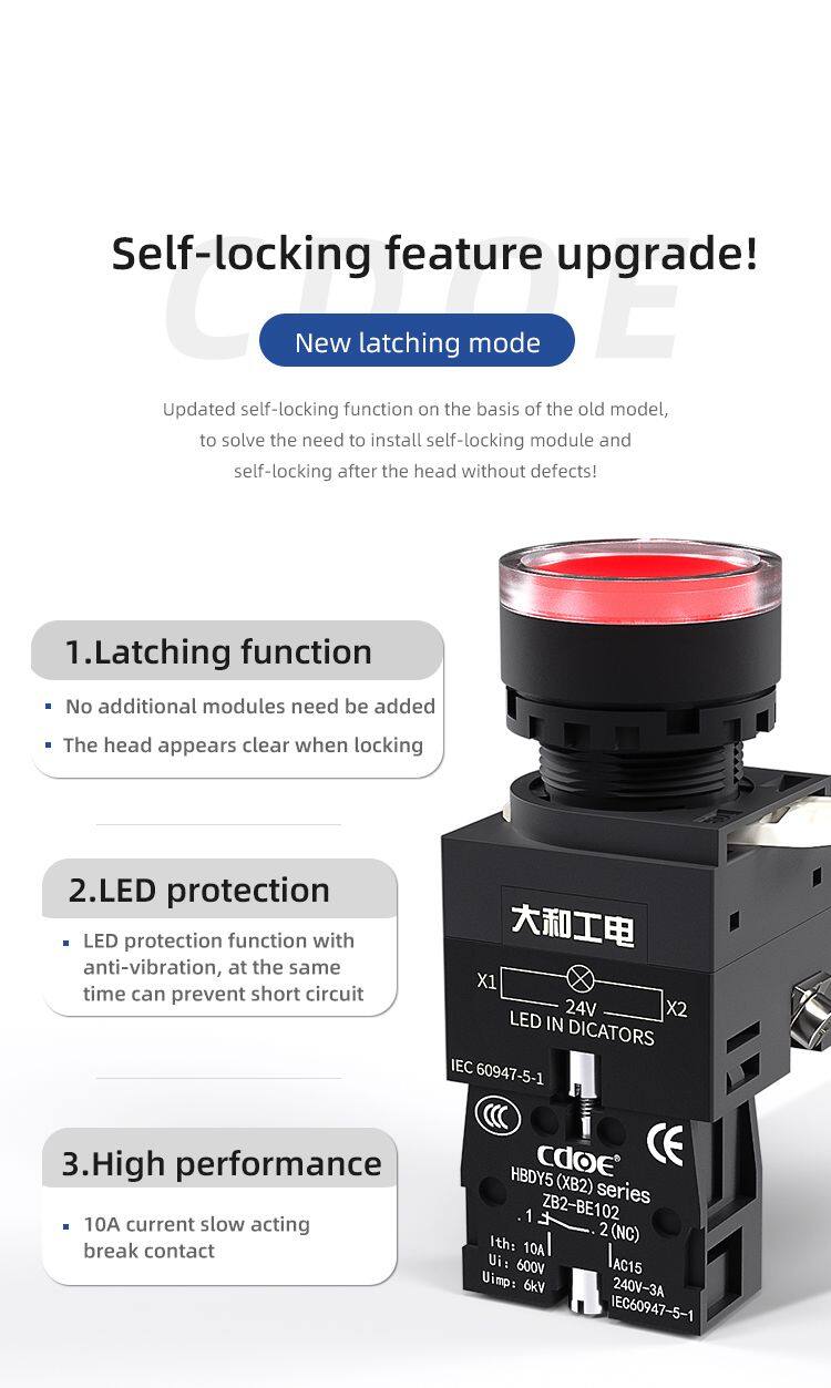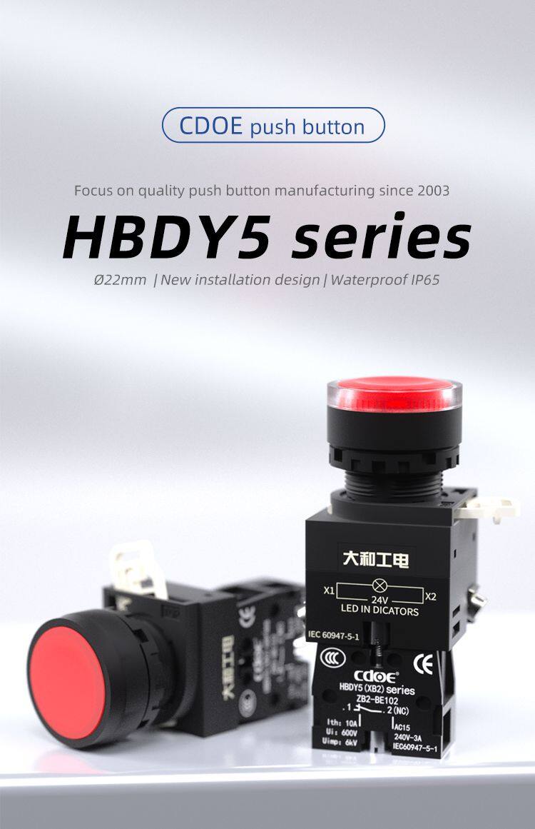 Ip65 Plastic Flat Round Head 660v 1no1nc 22mm Illuminated Push Button Momentary With LED