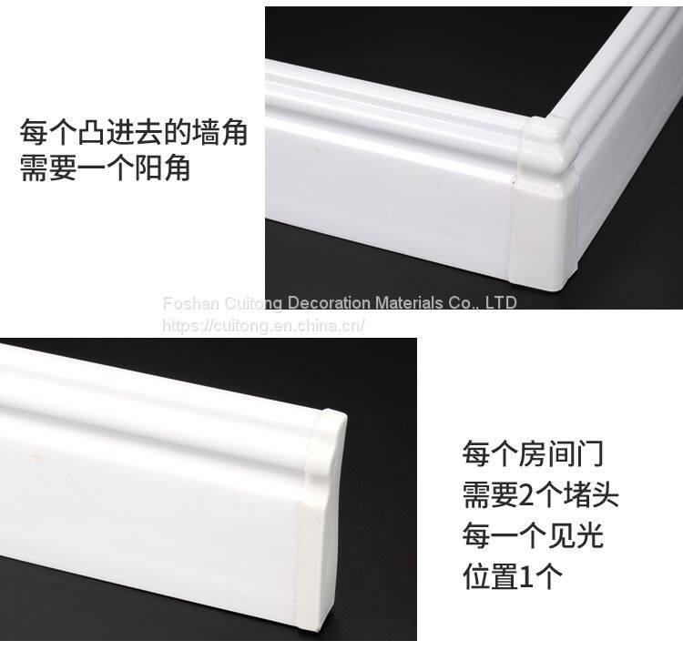 Waterproof PVC skirting line engineering buckle footing line with Yin and Yang Angle black and white gray corner line home baseboard