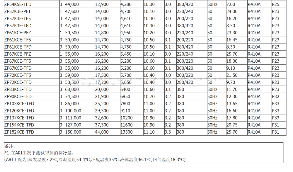 380-420V; 50Hz, 3 PhaseZR49KCE-TFD ZR54KCE-TFD ZR54KE-TFD ZR57KE-TFD ZR57KCE-TFD ZR61KE-TFD ZR61KCE-TFD ZR68KCE-TFD?ZR72KCE-TFD ZR81KCE-TFD ZR84KCE-TFD ZR94KCE-TFD ZR108KCE-TFD ZR125KCE-TFD ZR144KCE-TFD?ZR160KCE-TFD ZR190KCE-TFD ZR250KCE-TWD ZR310KCE-TWD ZR380KCE-TWD
