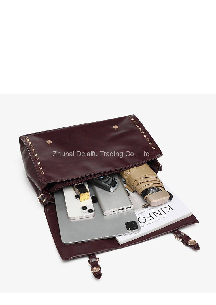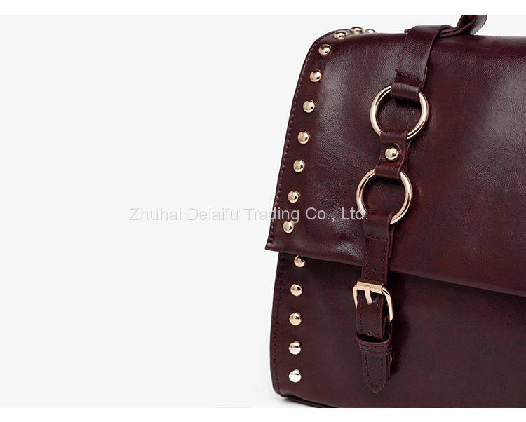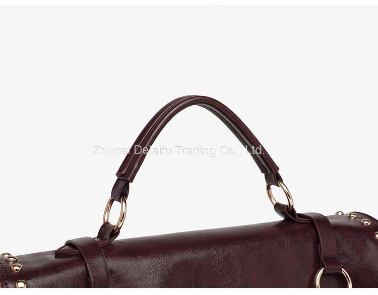 Home > Products > PU handbag > Classical Vintage Rivet Decoration Briefcase Soft Oil Wax Leather Crossbody Bag